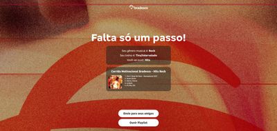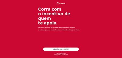 Corrida patrocinada pelo Bradesco pra influenciadores e convidados. O corredor conecta o Spotify, monta o perfil de treino e sai com uma playlist personalizada. Dias depois, áudios motivacionais gravados pelos amigos aparecem no meio das músicas.