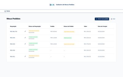 IMM é o maior grupo de produção de eventos do Brasil. O time de compras aprovava pedidos numa ferramenta improvisada em cima do Protheus: sem mobile, sem automação de e-mail, sem flexibilidade pra customizar fluxos. A gente construiu o portal que substituiu essa ferramenta e hoje roda toda a operação de compras do grupo.