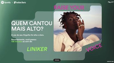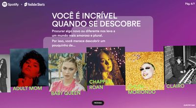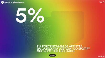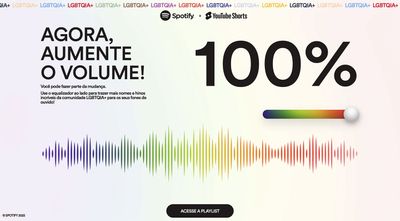 Ativação conjunta Spotify e YouTube Shorts pro Dia do Orgulho LGBTQIAP+. O briefing: um hotsite onde o usuário descobre quanto da sua biblioteca musical já é de artistas LGBTQIAP+ e sai com uma playlist personalizada pra aumentar esse número.